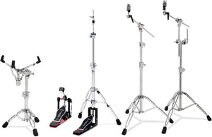 The DW 5000PK4 Pack is the perfect complement to any 4-piece acoustic or electronic kit. Includes a DW 5000AD4 dual chain drive bass drum pedal, heavy-duty 5500TD 2-leg rotating hi-hat stand, 5300 offset snare drum stand, 5700 straight/boom cymbal stand and 5791 combo tom/cymbal stand.