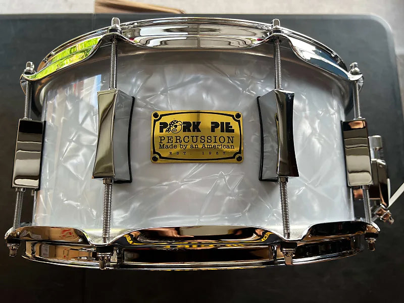 Pork Pie 6.5" x 14" USA Custom Snare Drum - Vintage Pearl with Rings